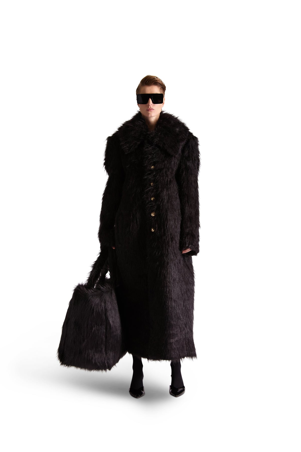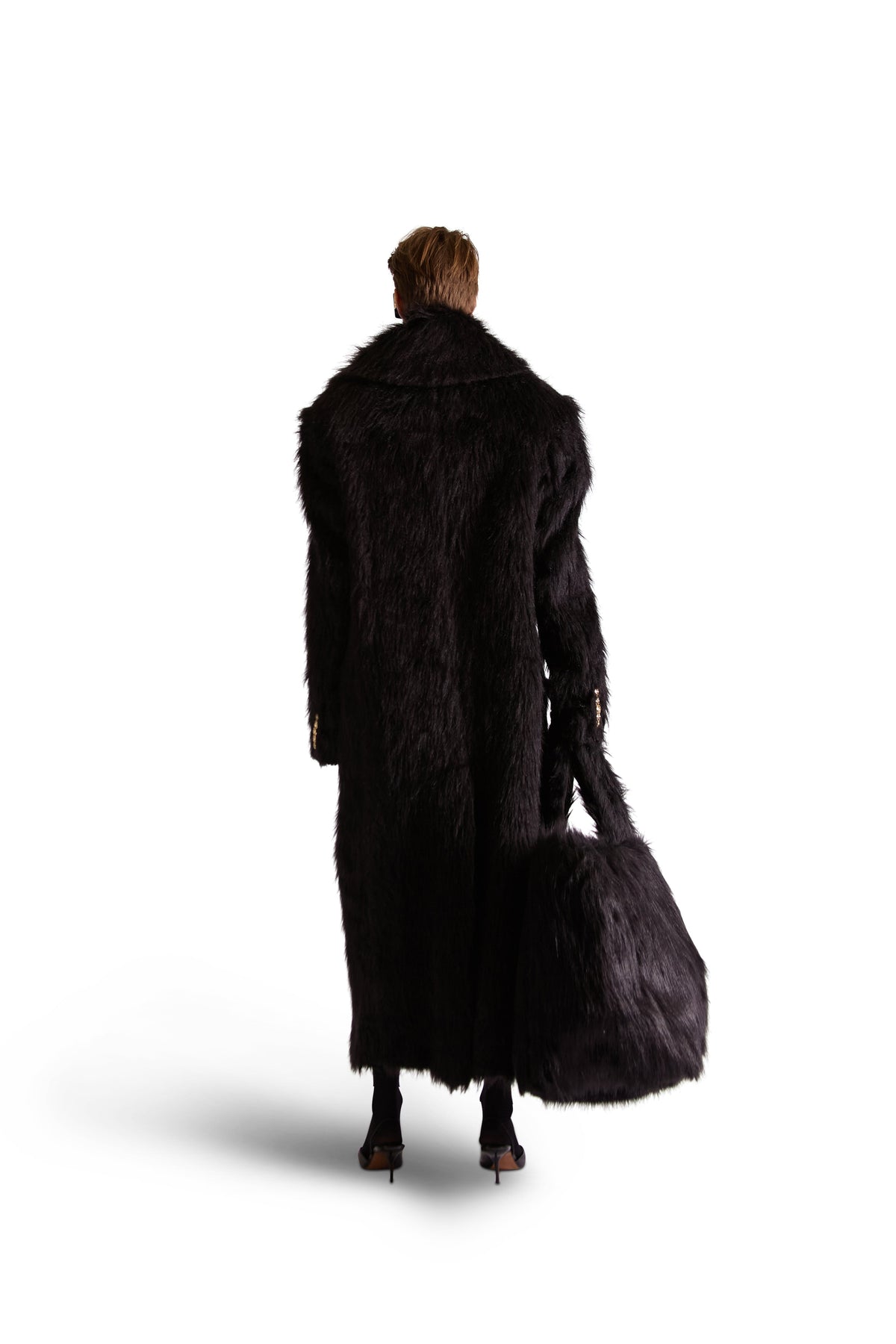 Helen Anthony faux fur oversized shoulder bag featuring inside zips and a button close pouch with additional slip pockets