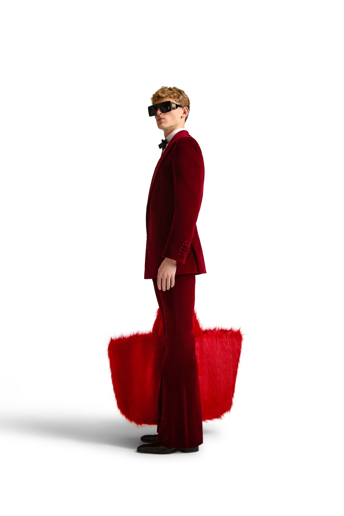 Helen Anthony faux fur oversized shoulder bag featuring inside zips and a button close pouch with additional slip pockets