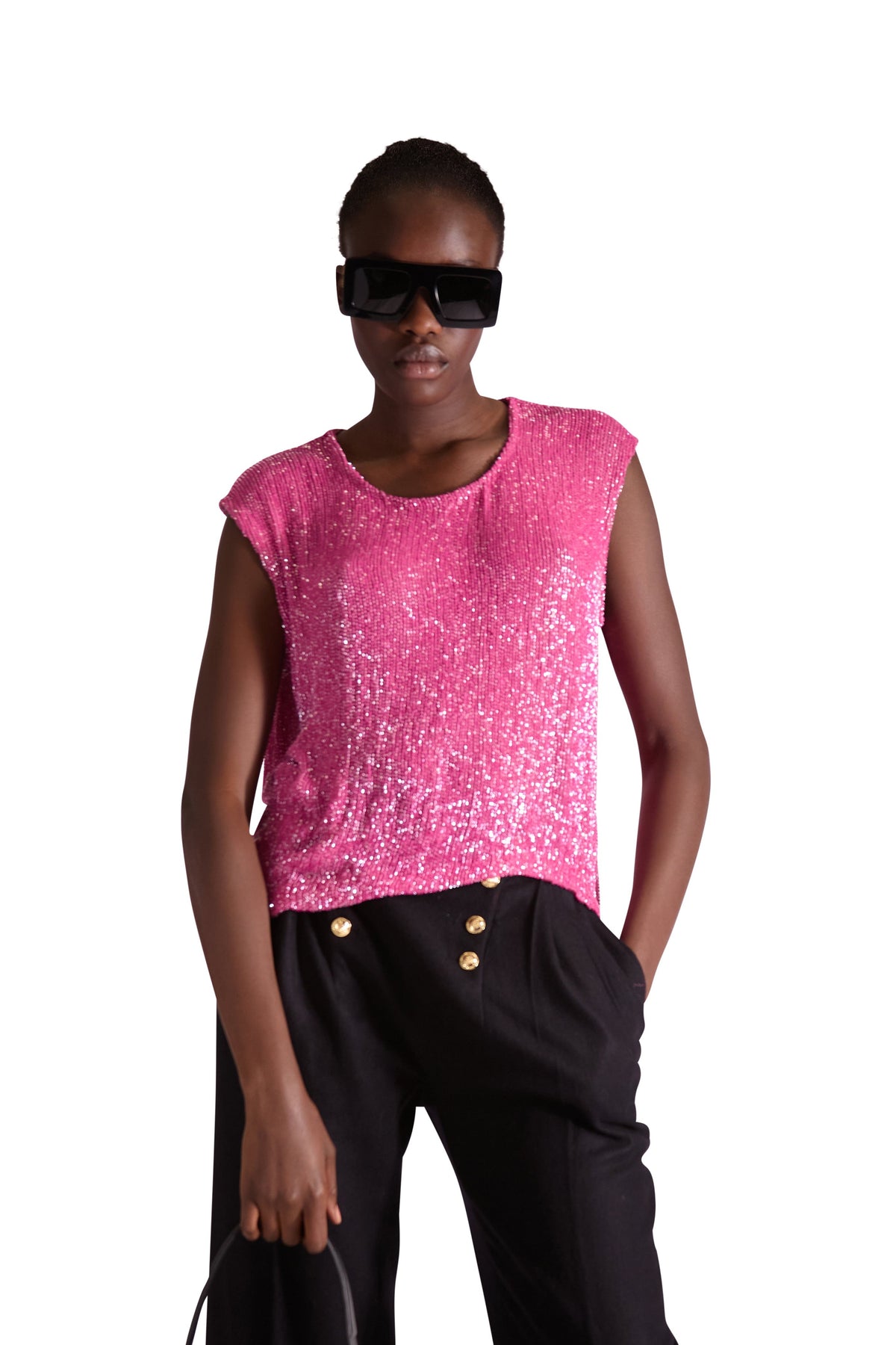 Helen Anthony hand embroidered katdana beaded sleeveless top