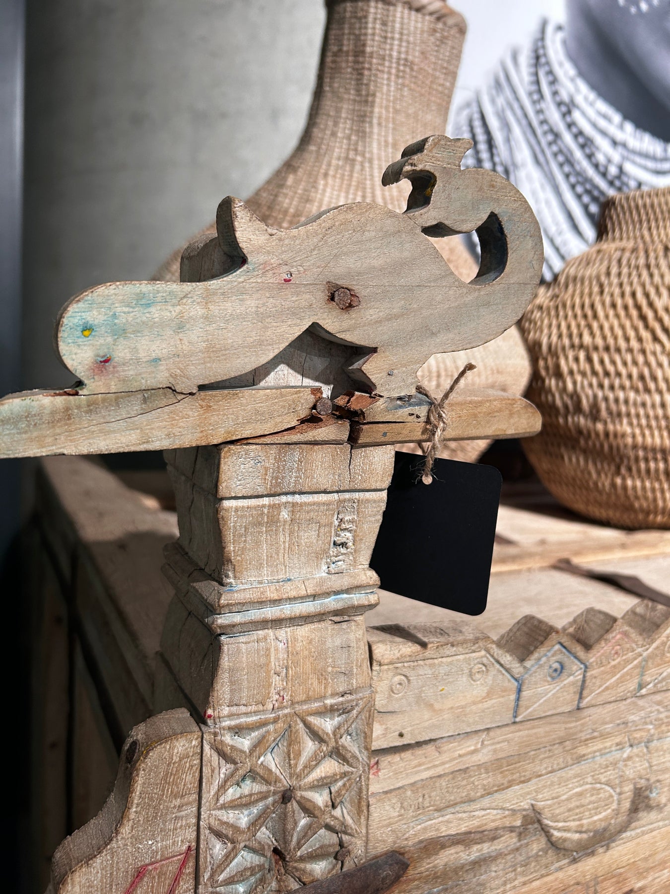 This Dowry Chest is a one off piece in our collections.  It’s a 19th Century piece of beautiful furniture.  The chest is adorned with metal straps along the height of the doors and small circular mirrors with each one framed with decorative metal.  They were originally used to store valuables like textiles, cash and jewellery which could be used as dowry for weddings.