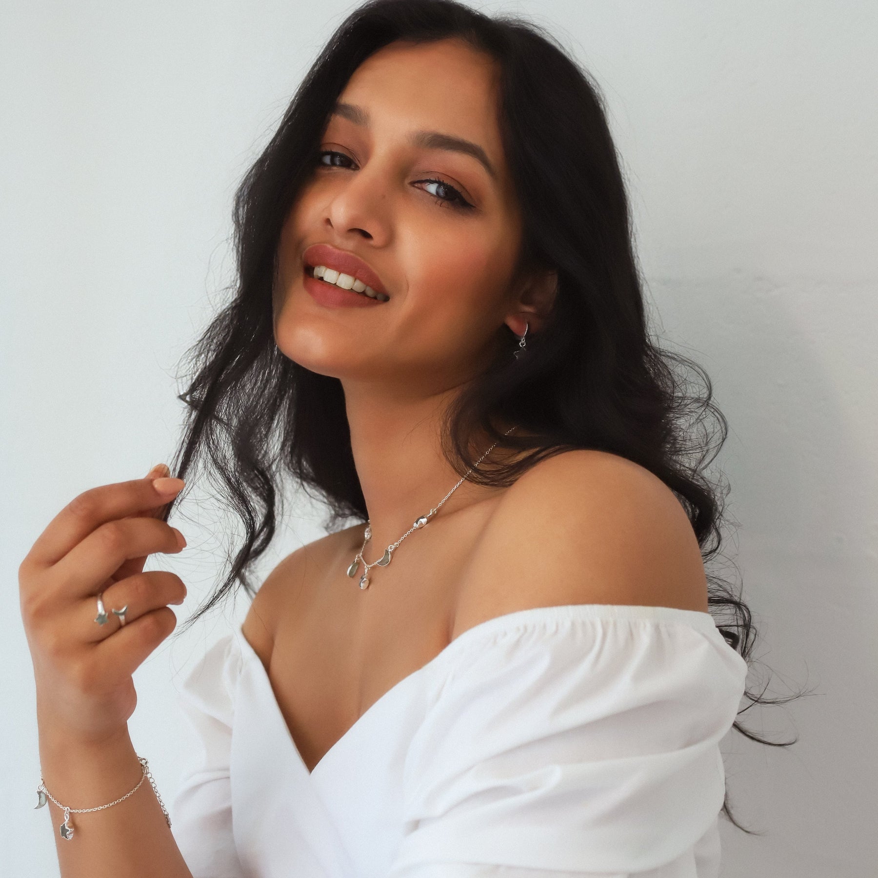 Celebrate self-love and harmony with Adela, our absolutely stunning new raw quartzite crystal necklace featuring beautiful aventurine quartz star & moon charms hanging from a silver chain.