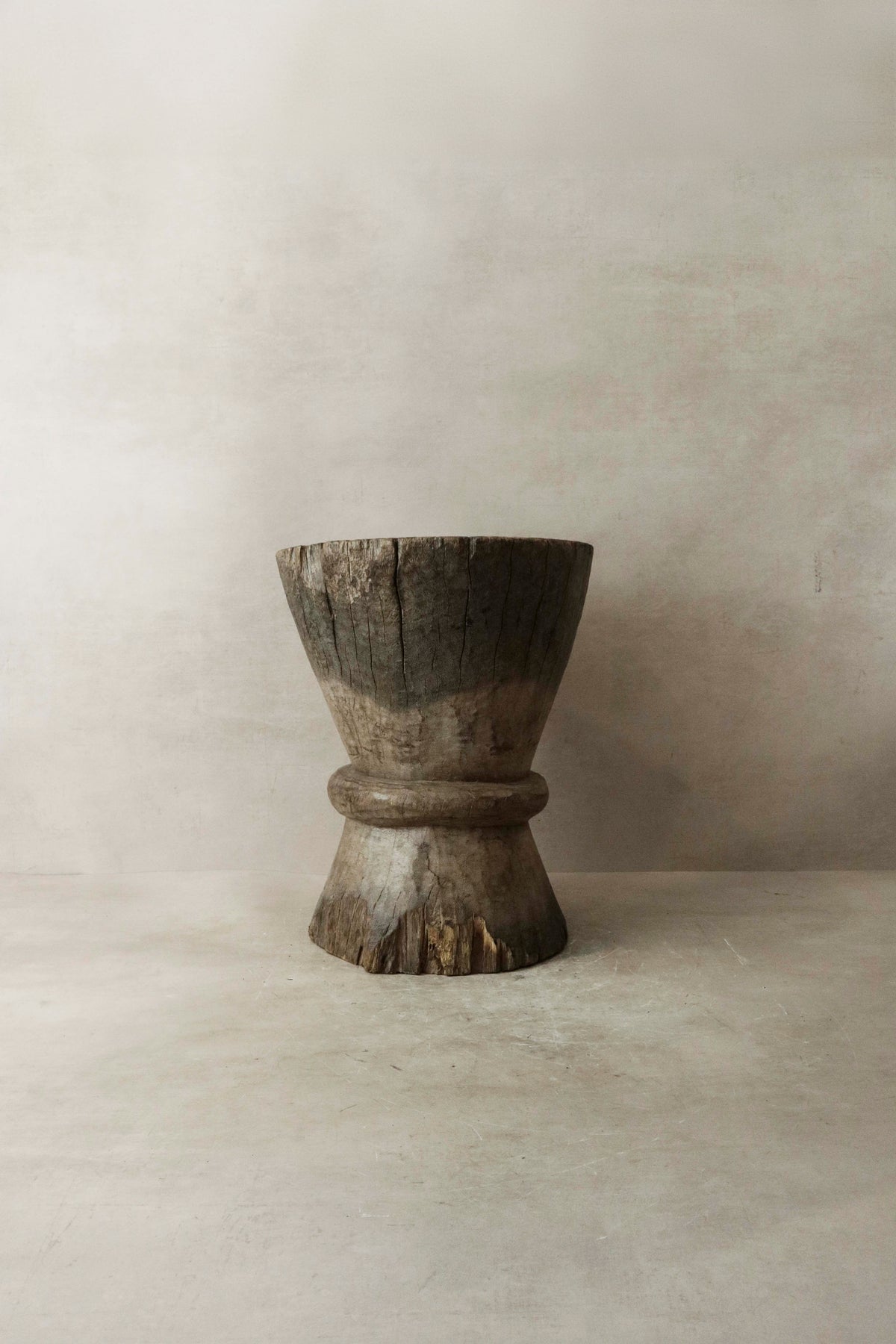 African grain stompers are made when they hollow out tree trucks and large branches to create these which are then used to grind grain. They can be used as planters or turn them upside down to be used as stools/ planters or simply standing as a piece of sculpture.
