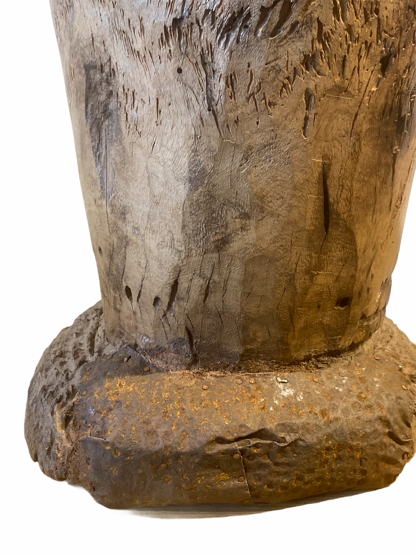 African grain stompers are made when they hollow out tree trucks and large branches to create these which are then used to grind grain. They can be used as planters or turn them upside down to be used as stools.