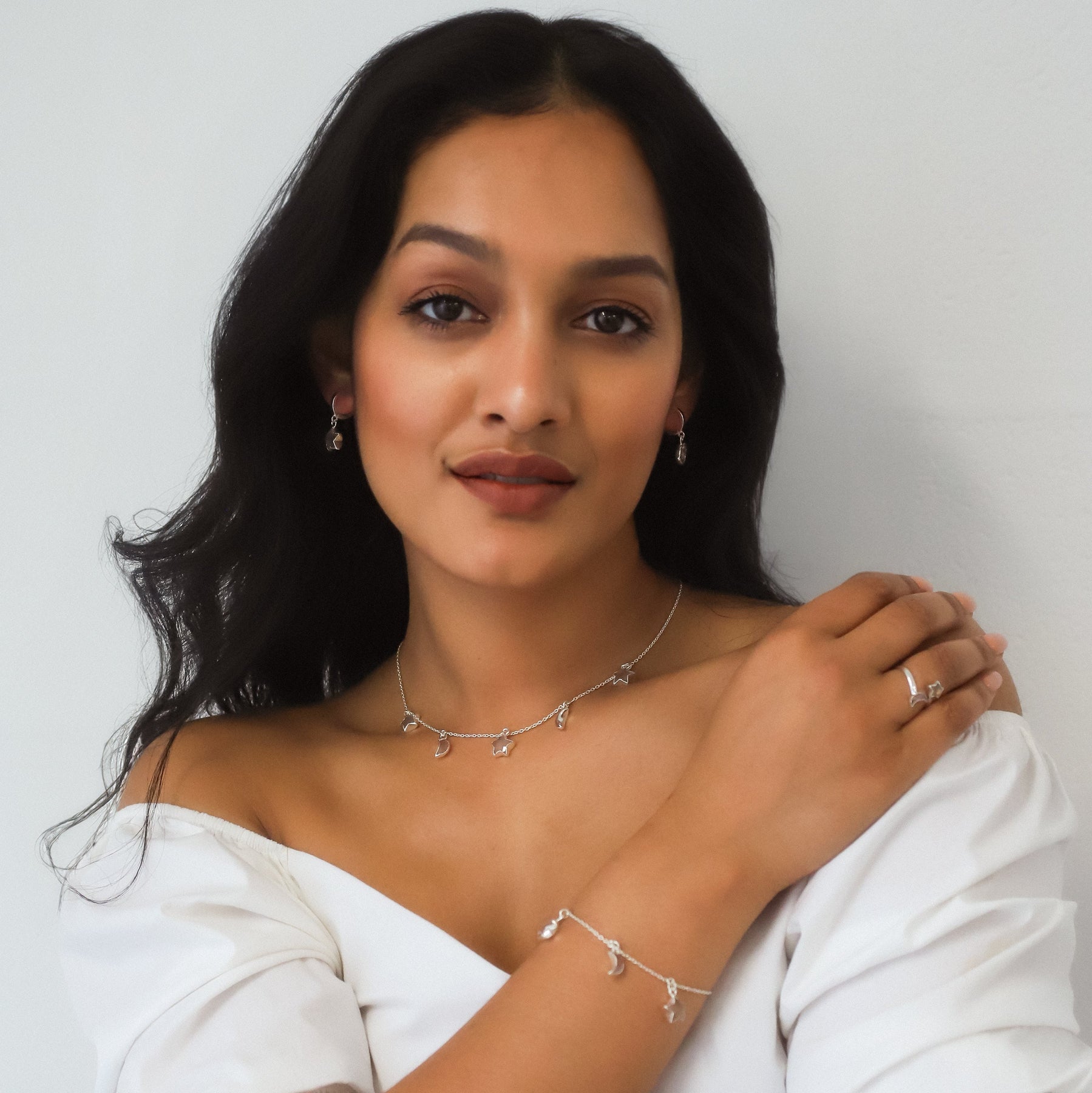Amelia Rose Quartz Star & Moon Charm Bracelet | 925 Sterling Silver