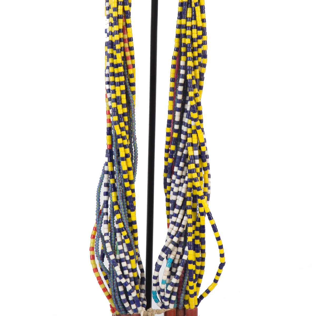 A unique antique necklace with multi colourful strands and brass ends is a stunning jewellery art piece. Tribal jewellery from the Nupe people in Nigeria.