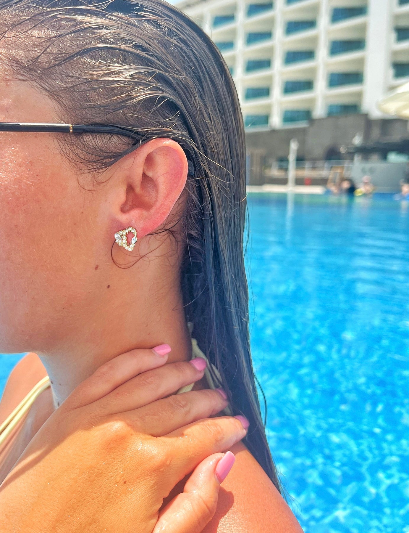The beautiful Ariana studs feature a delicate heart shaped wreath pretty pearl accents with a gold coloured base.