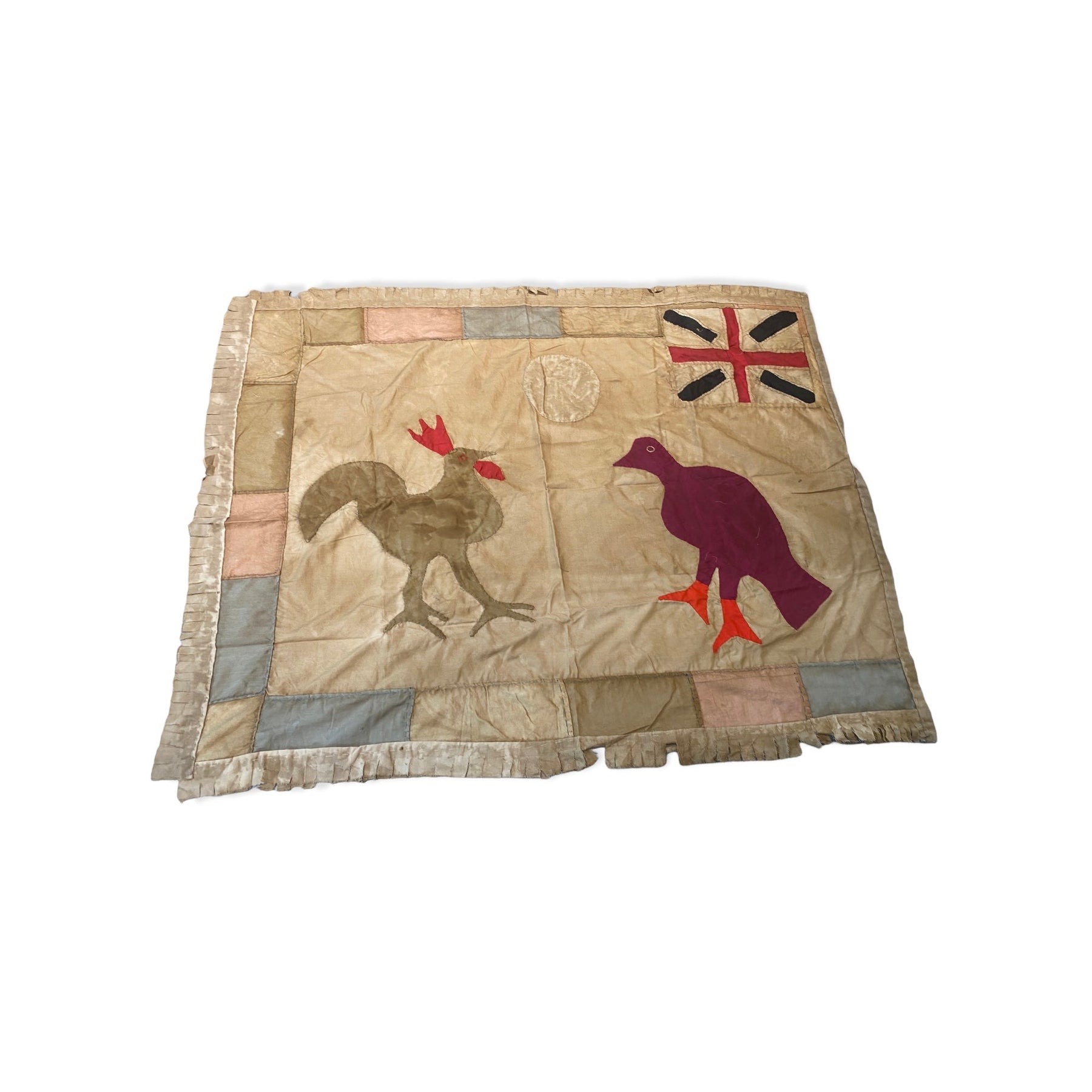 The Fante people were largely influenced by the British and Portuguese, and developed their own Asafo military “companies”, adopting colonial fighting techniques, hierarchy and Euro-inspired regalia, which was adapted to fit into their own context. As a result each company, and eventually each member, designed their own emblematic Fante flag.