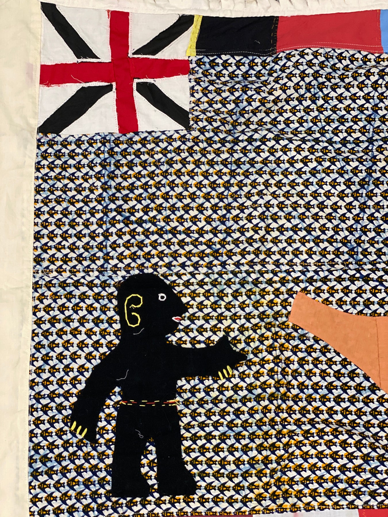 Elements displayed on a Fante flag tell a story, often revealing the type of industry and activities the associating company is involved in, from fishing, hunting and farming, to designs asserting wealth and power. You will notice that post 1957, after Ghana received independence, flags sometimes display the Ghanaian flag, rather than the Union Jack.