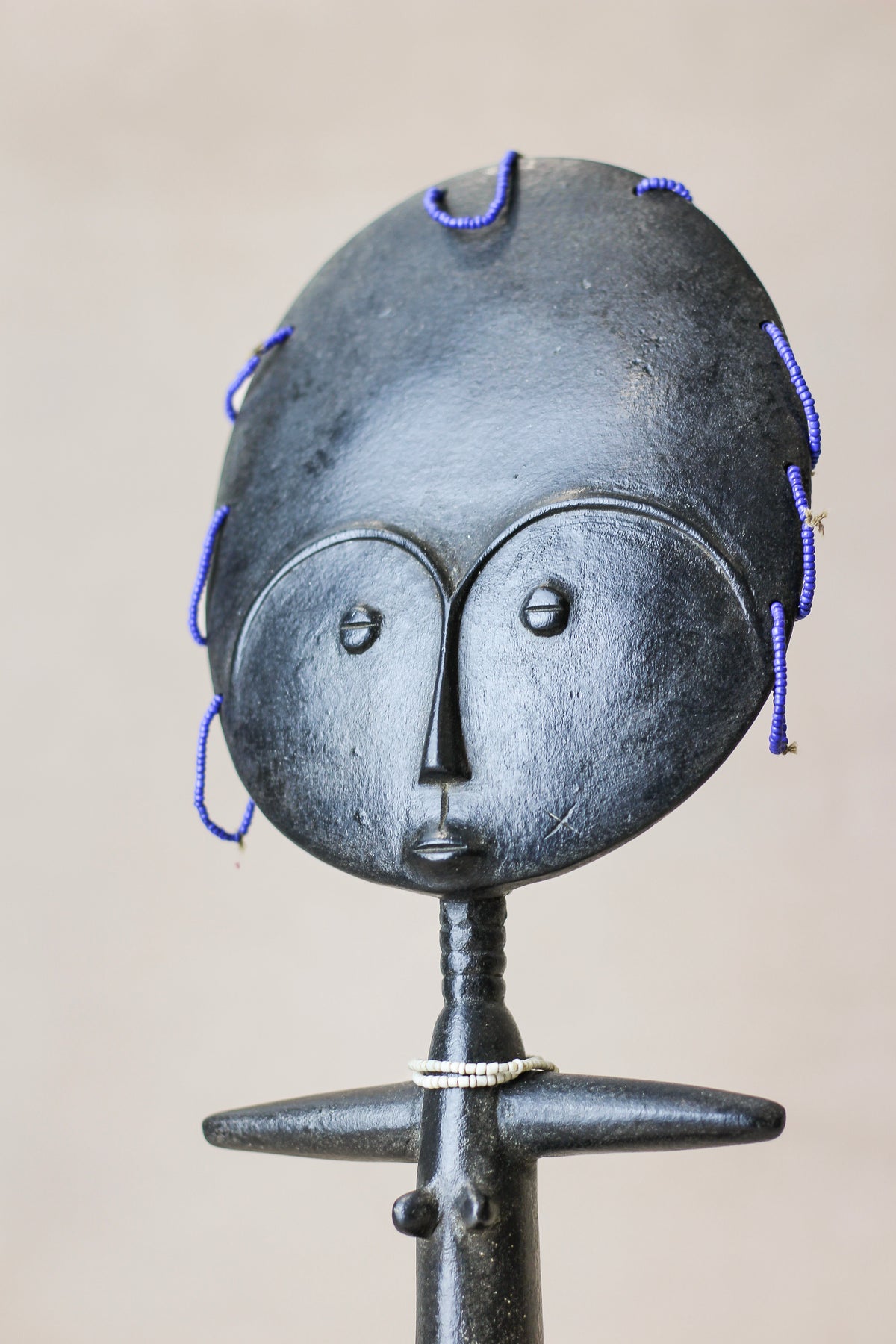 African hand carved Ashanti dolls. The fertility doll originates from Ghana and alongside the Ashanti Stools they are important objects can be found in many other African countries in western Africa. Each piece is slightly different as they are handmade.