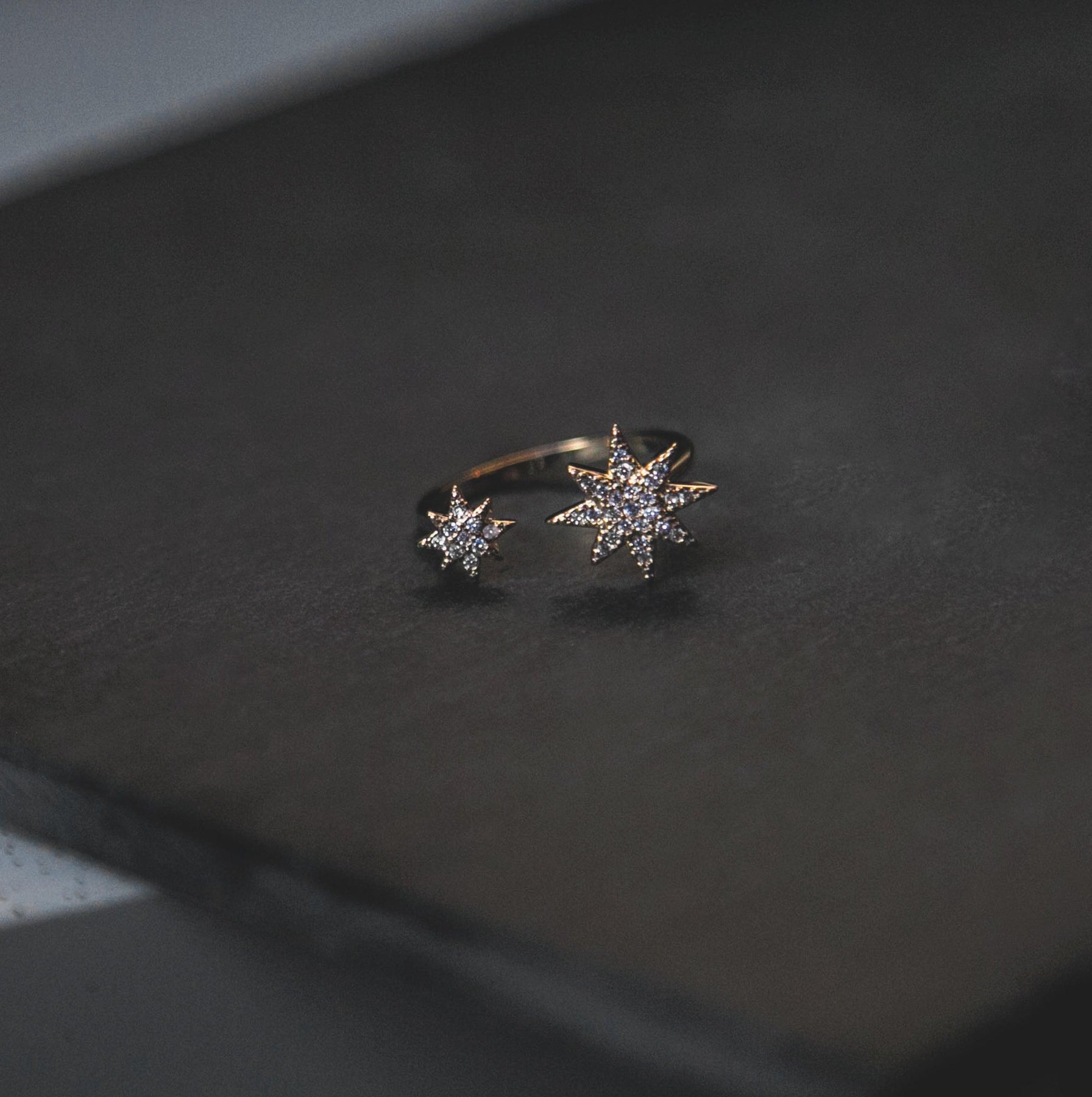 It's double trouble with our gorgeous two star Astrid open style ring crafted in an array of shimmering crystals set on a gold plated band.