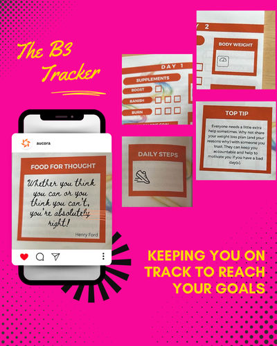 A pad, packed with purpose! This beautiful and vibrant pad contains a full user guide to help you navigate your numbers easily and a 'page per day', designed to help you track your supplements and your progress. The pages also include some daily motivation, tips or idea's to help you accelerate your weight loss success. The B3 Tracker Pad will be your perfect companion to support you through your first 30 days on the B3 System!