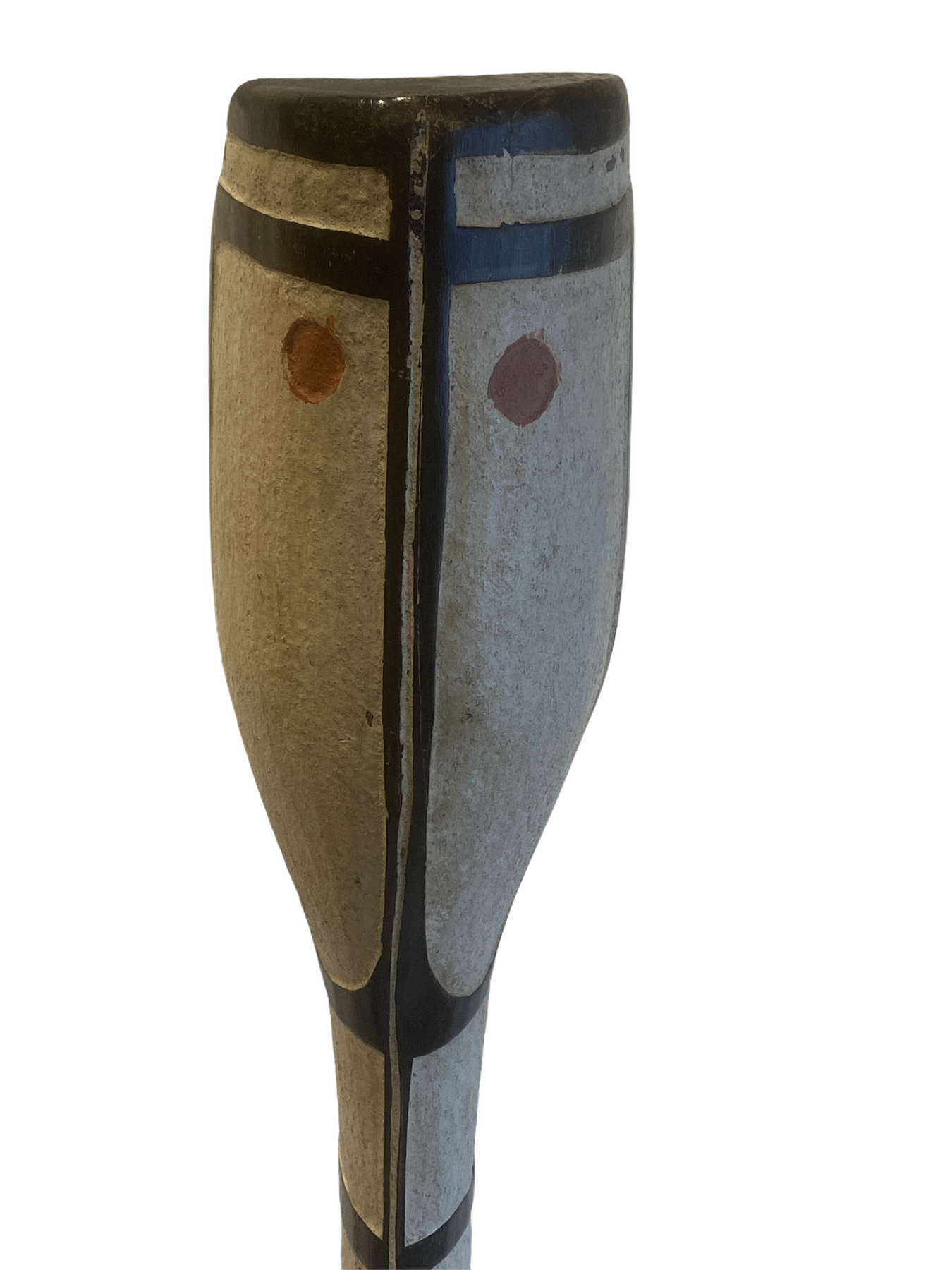 This is a Baga protective serpent, known in the literature under various names: Bansonyi, A-mantsho-na-tshol or Inap. The serpent represented is said to be similar to the ferocious python which spirit called Ninkinanka is involved in curing infertility and droughts, bringing prosperity, wealth, and rain. These sculptures are worn on the top of the head, with a headdress to hold it fitting around the shoulders.
