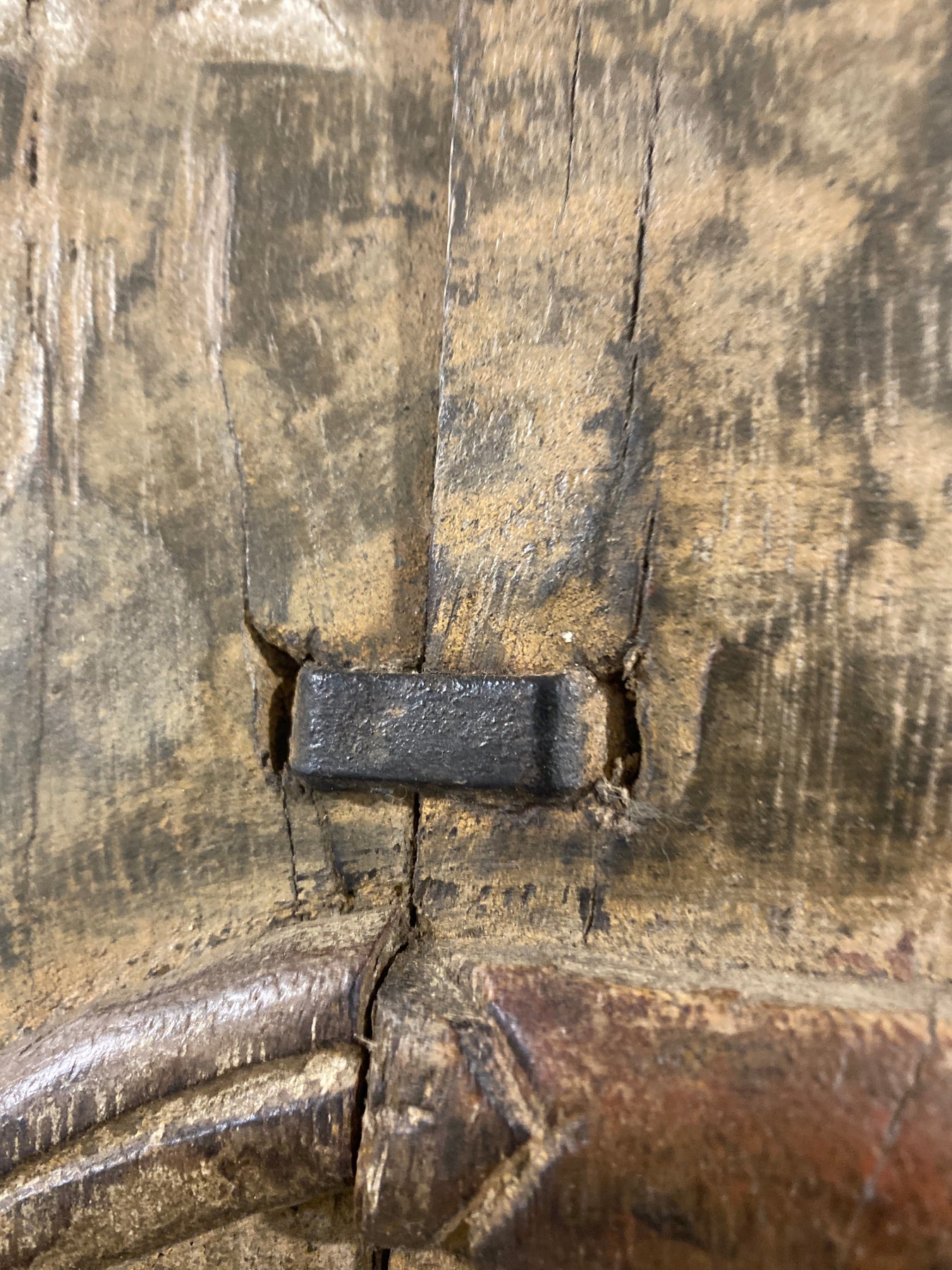 These doors have been used and there are naturally wear marks and scratches on the surface which adds to its origin and old character.  Where metal is present in these doors is where the owners have repaired the cracks.  The doors are used for decorative purposes and stunning pieces of art.