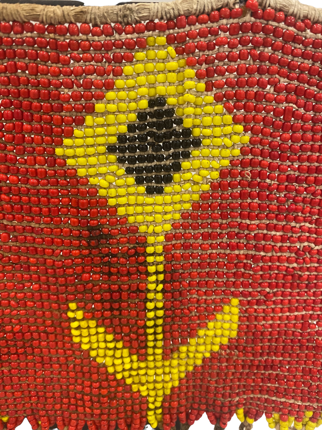 A beautiful vintage piece of art to display in your home.  This hand beaded loin cloth (skirt) made in Chad shows intricate patterns and colour.