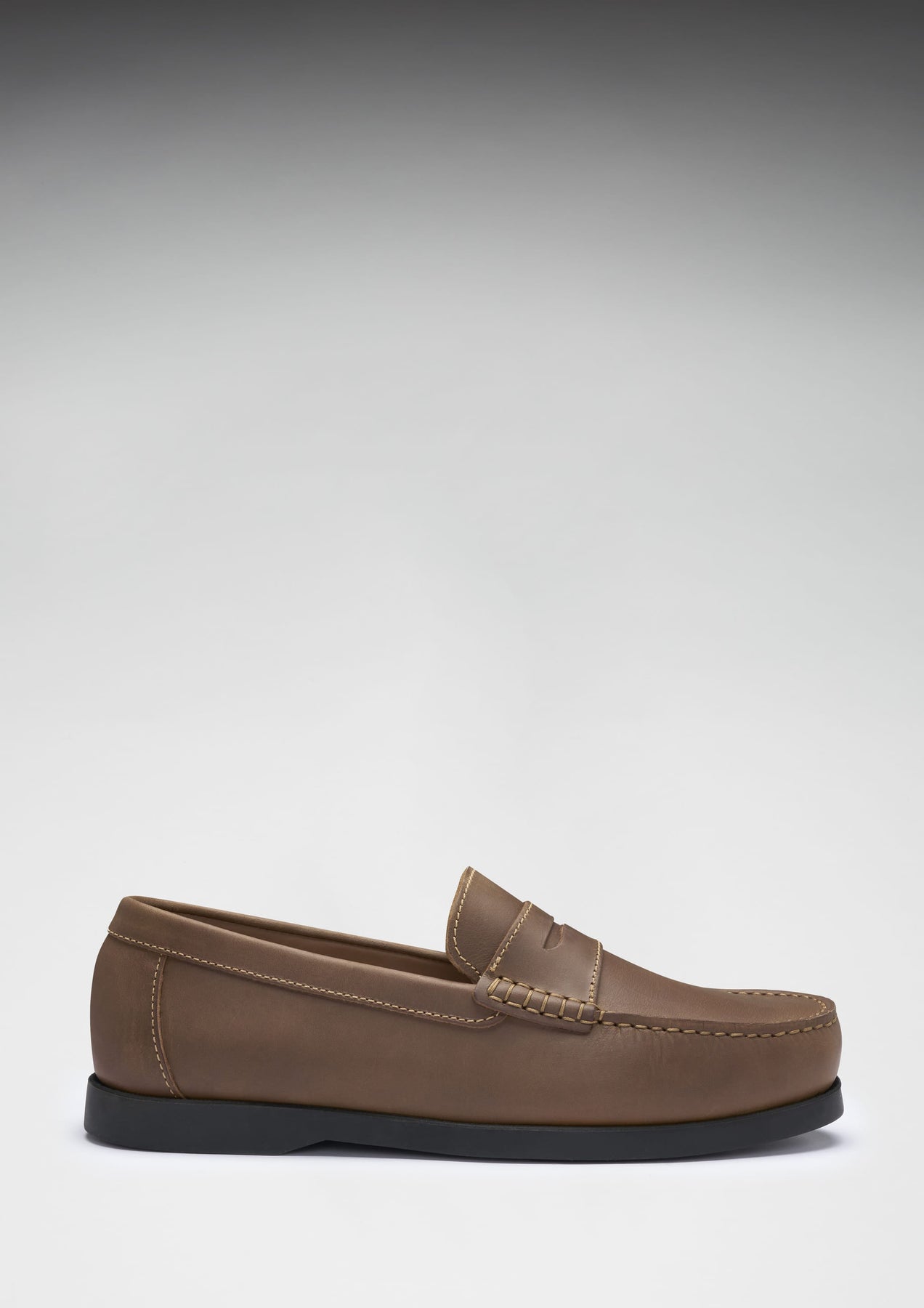 Here we offer you another Hugs & Co. take on a classic style. Our penny loafer upper made with carefully selected light brown leather is teamed with a robust boat shoe sole in black rubber. This gives the shoes great wearability, fantastic comfort and the timeless style you're looking for in a penny loafer.