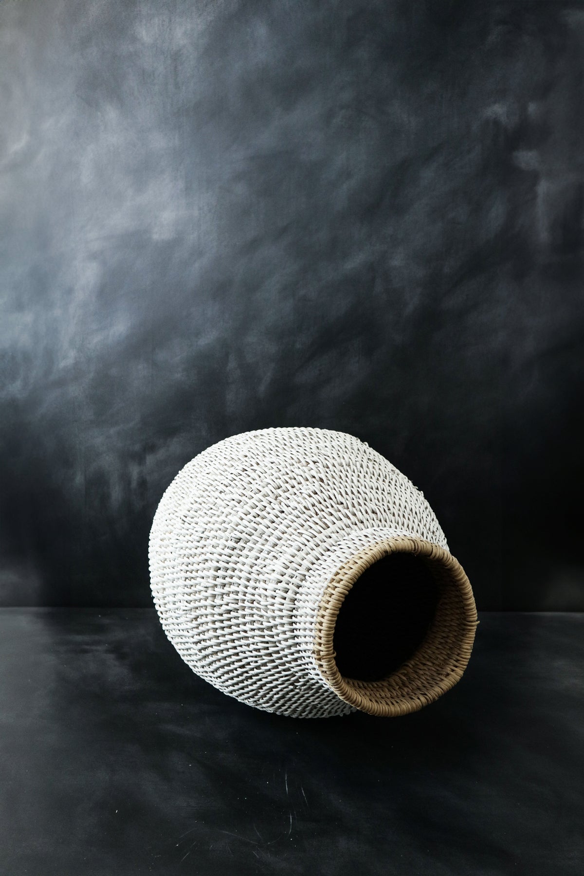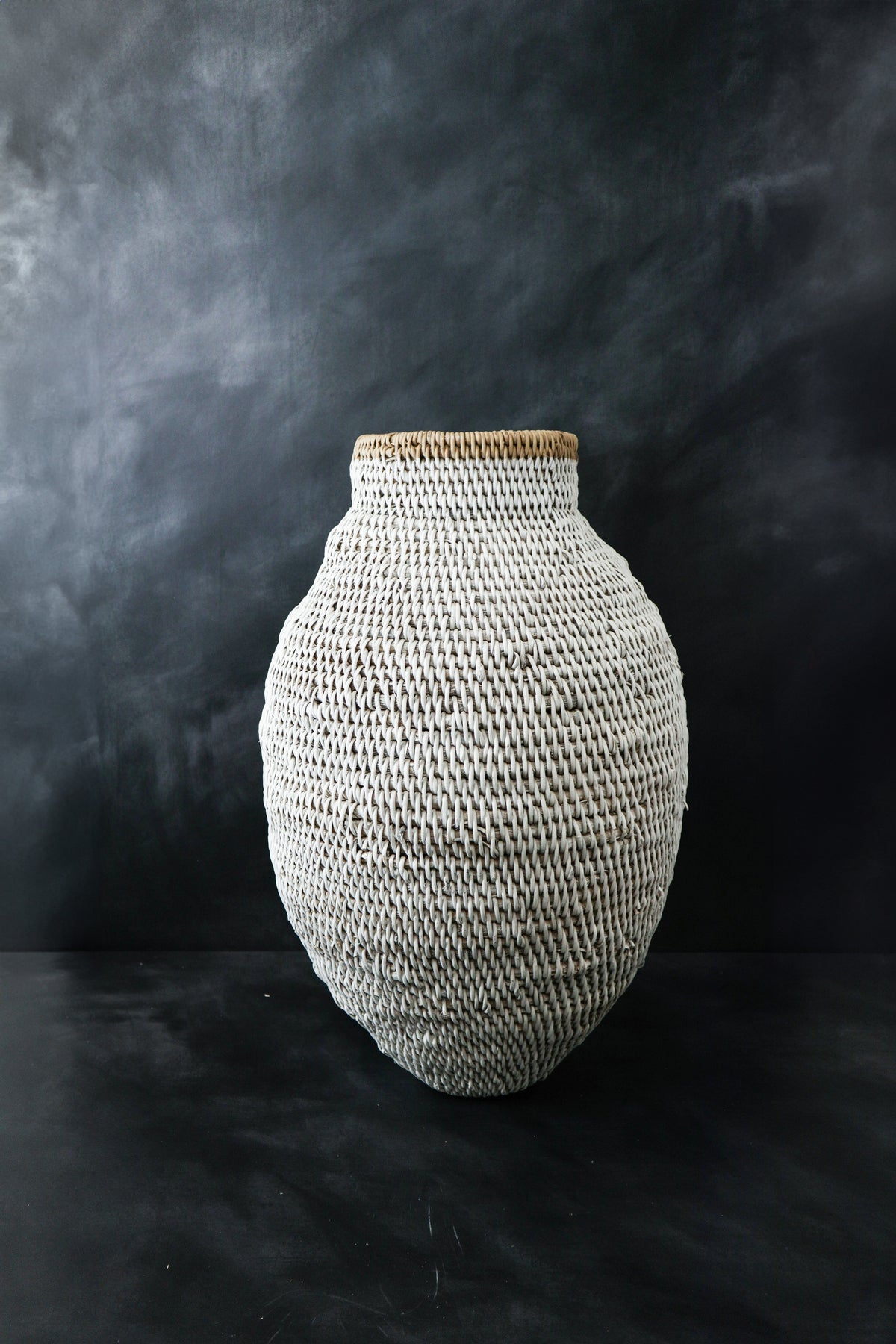 Painted white with the natural reeds striped pattern design.