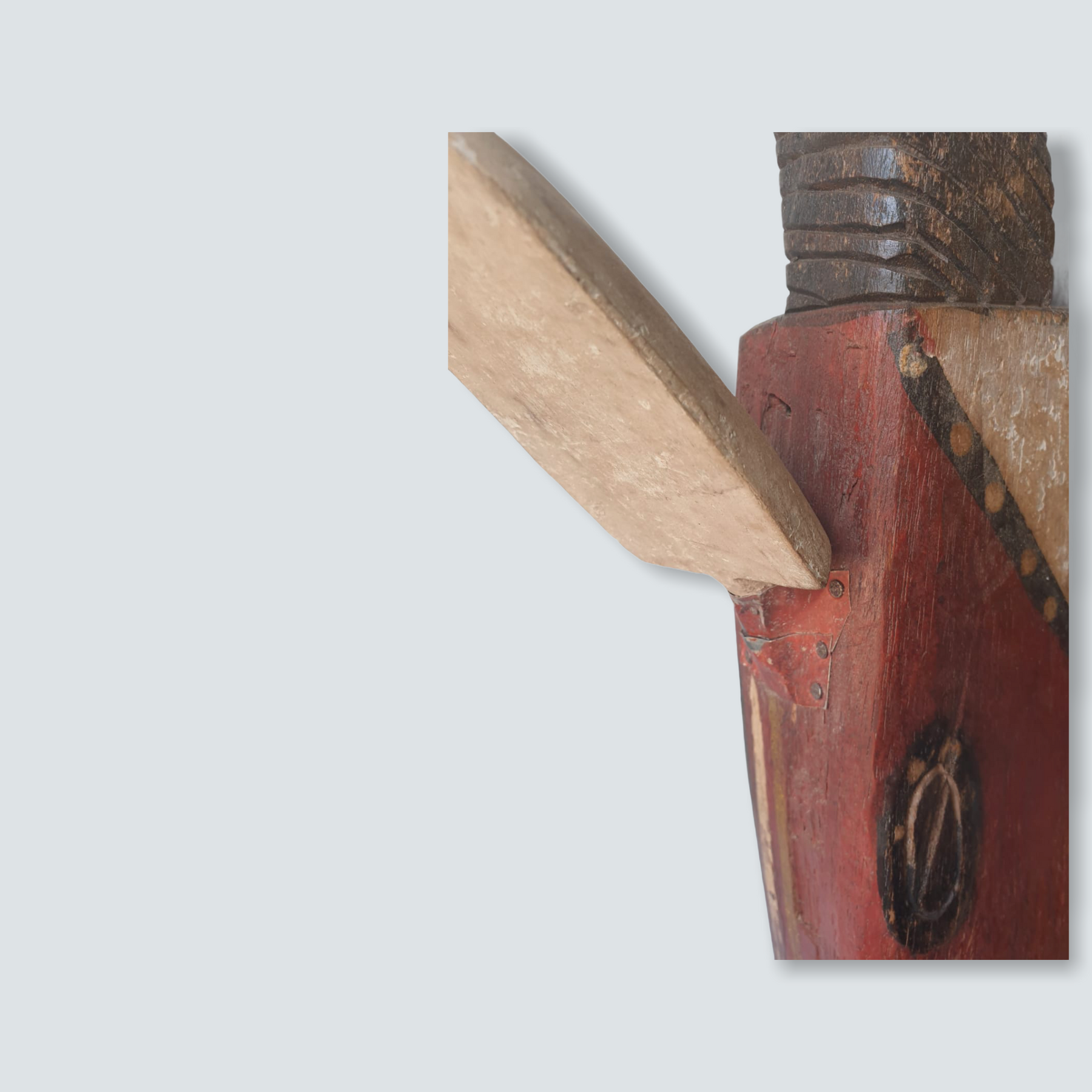 Size:  62cmH on stand, 52cmH mask x 39cmW x 9cmD