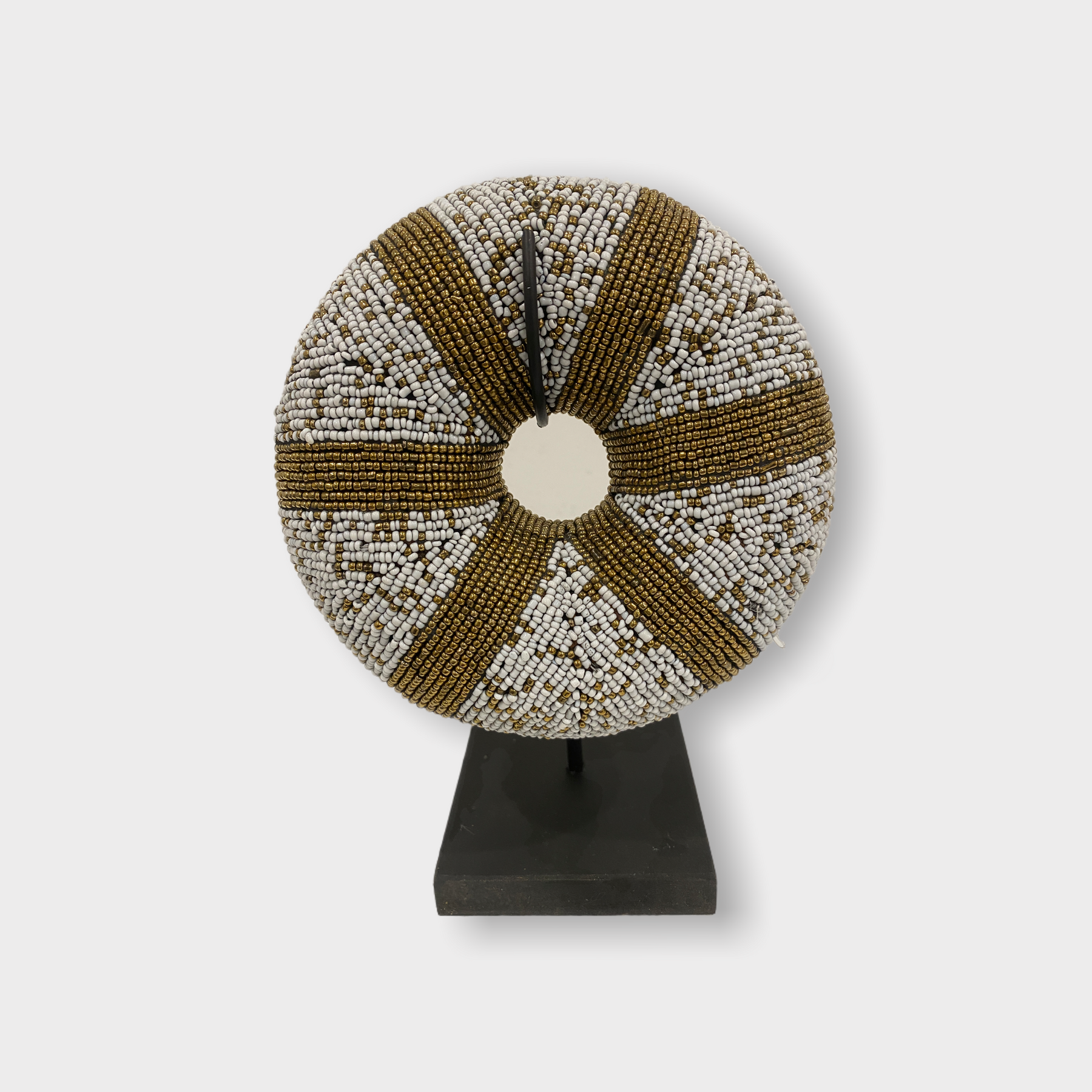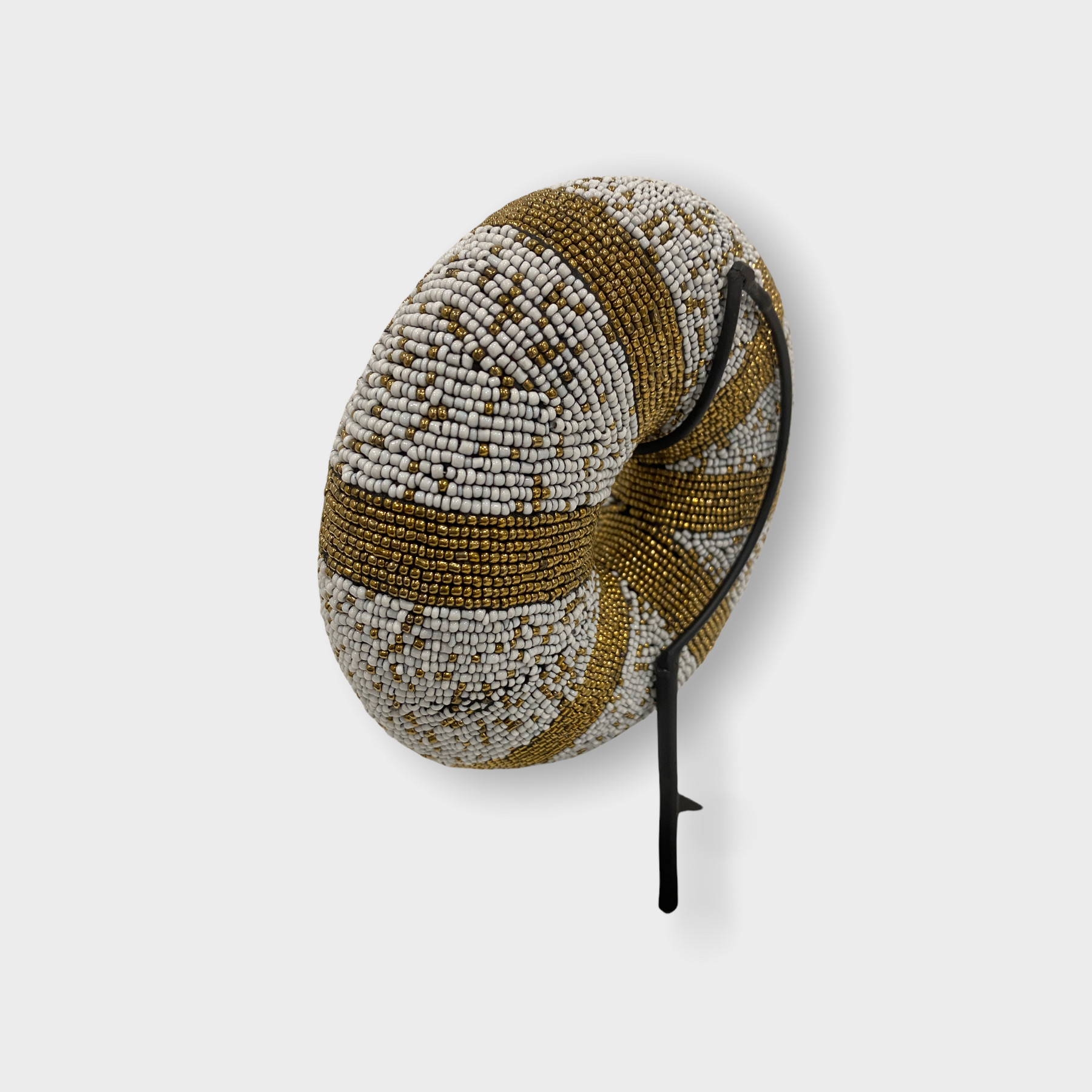 These beautiful handmade donut ring shaped bracelets are made by the Bameleke people in Cameroon. The bangle is made from clay and then embellished with glass beads.
