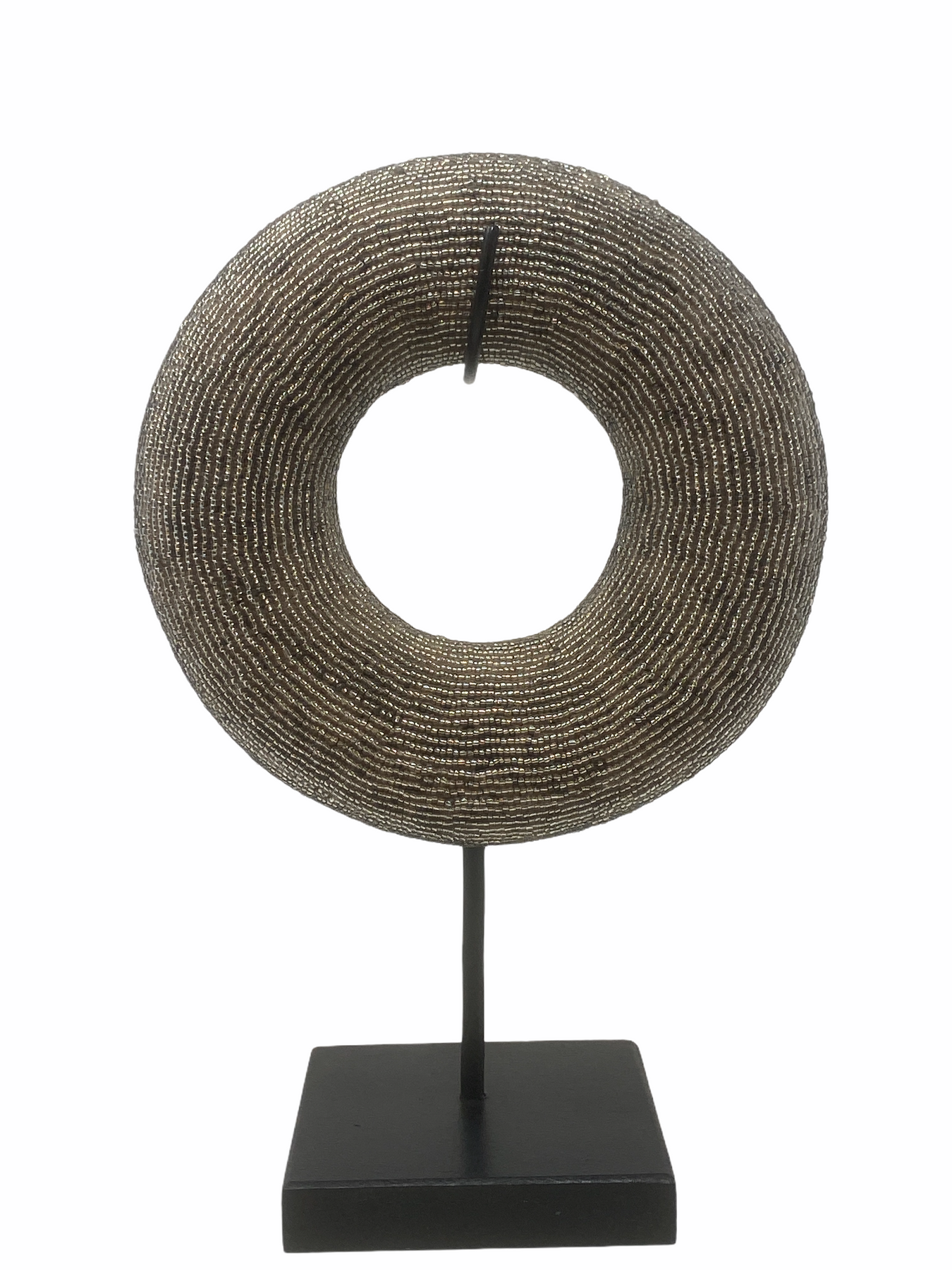 These beautiful handmade donut ring shaped bracelets are made by the Bameleke people in Cameroon. The bangle is made from clay and then embellished with glass beads.