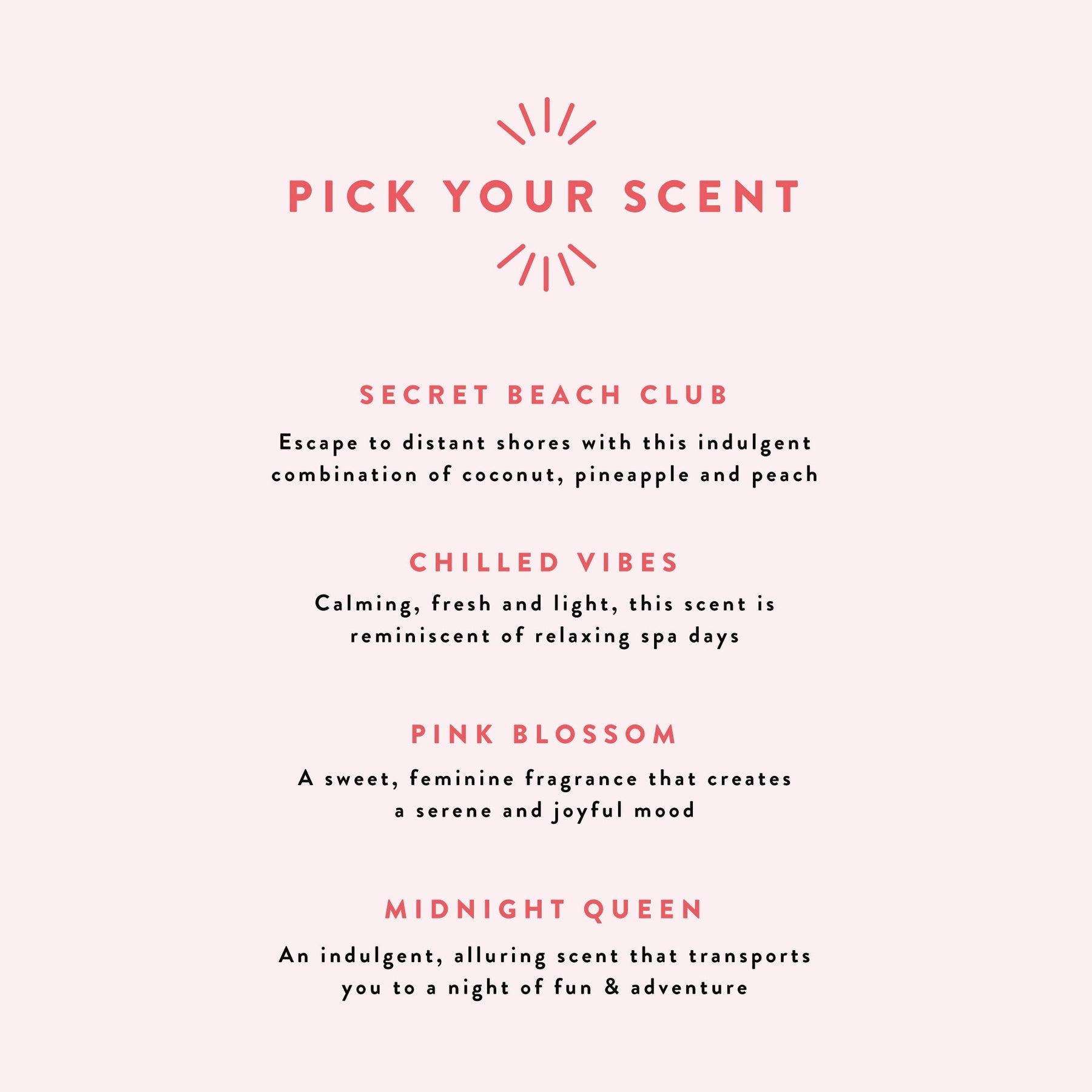 Choose Scent (descriptions below)