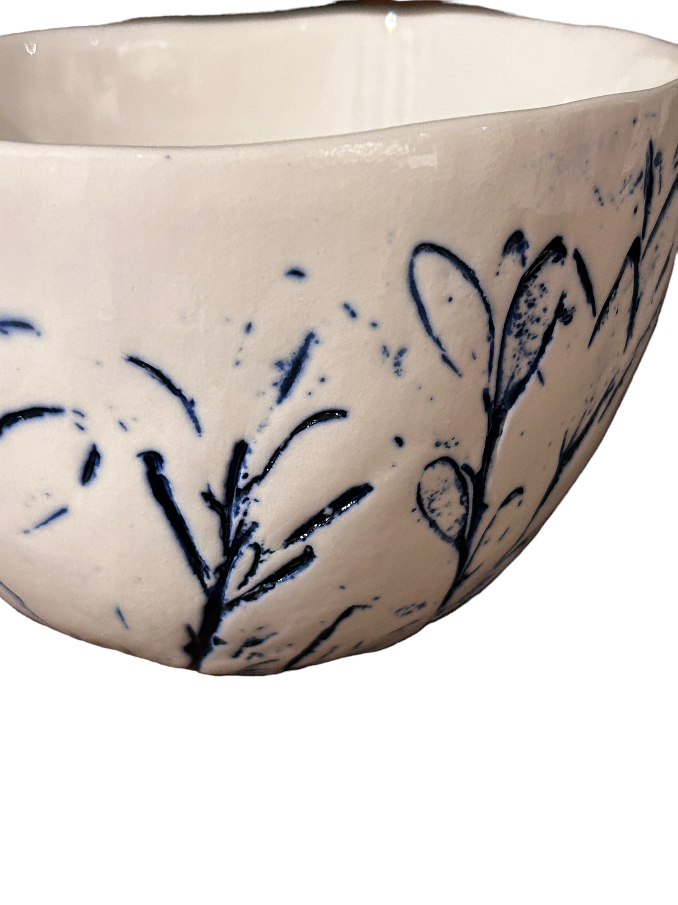 A beautiful hand made ceramic bowl with Fynbos plant design engraved. Made in South Africa.