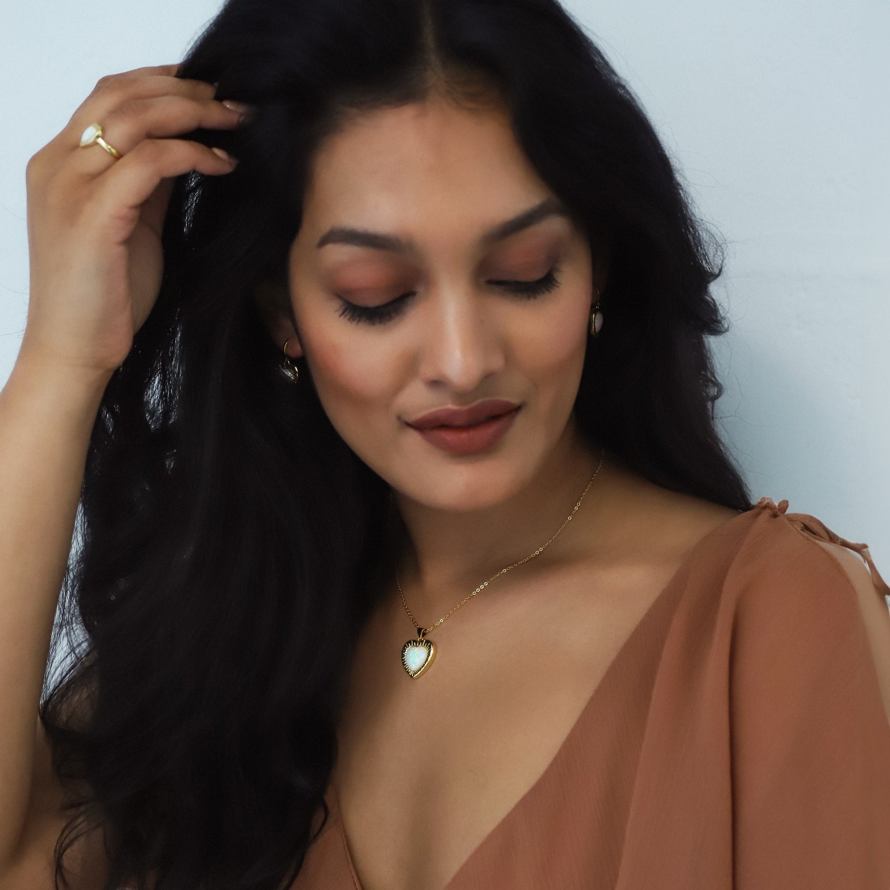 Cora is our new pendant necklace featuring a beautiful Opal stone captured in a chunky heart suspended from a gold chain and she is absolutely stunning! She's definitely a statement piece that will elevate any outfit to a whole new level and it's fair to say we are OBSESSED here at the Luna Charles head office