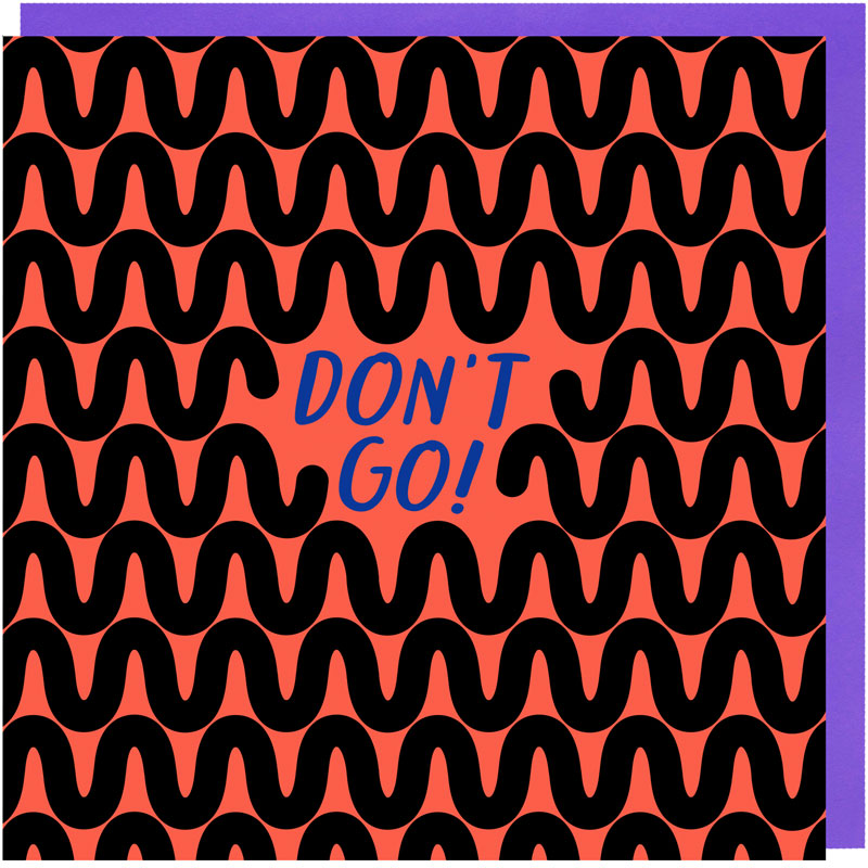 Printed on premium quality, FSC-certified 350gsm thick card, the wavy design features a graphic patterned background, with the caption 'Don't Go!' in the centre.